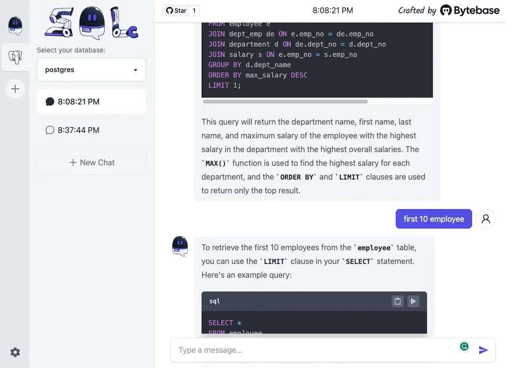 Bytebase: 官方口號 “Reliable Database CI/CD for Developers”, “The GitLab for Database DevOps”,當然也包含了本篇提到的 SQLChat - SQL Client + Chatbot。