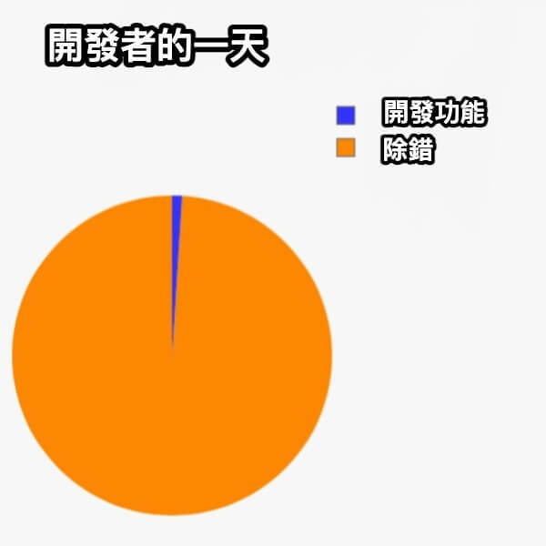 盲點2 流程分配不均: 開發者的一天 = 99% 除錯 (不良示範)